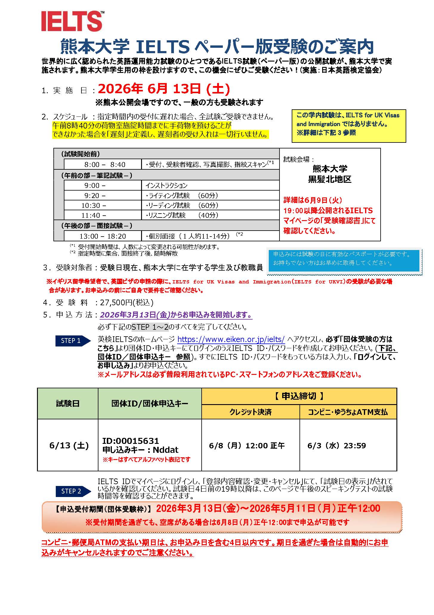 2026年度IELTS団体受験
