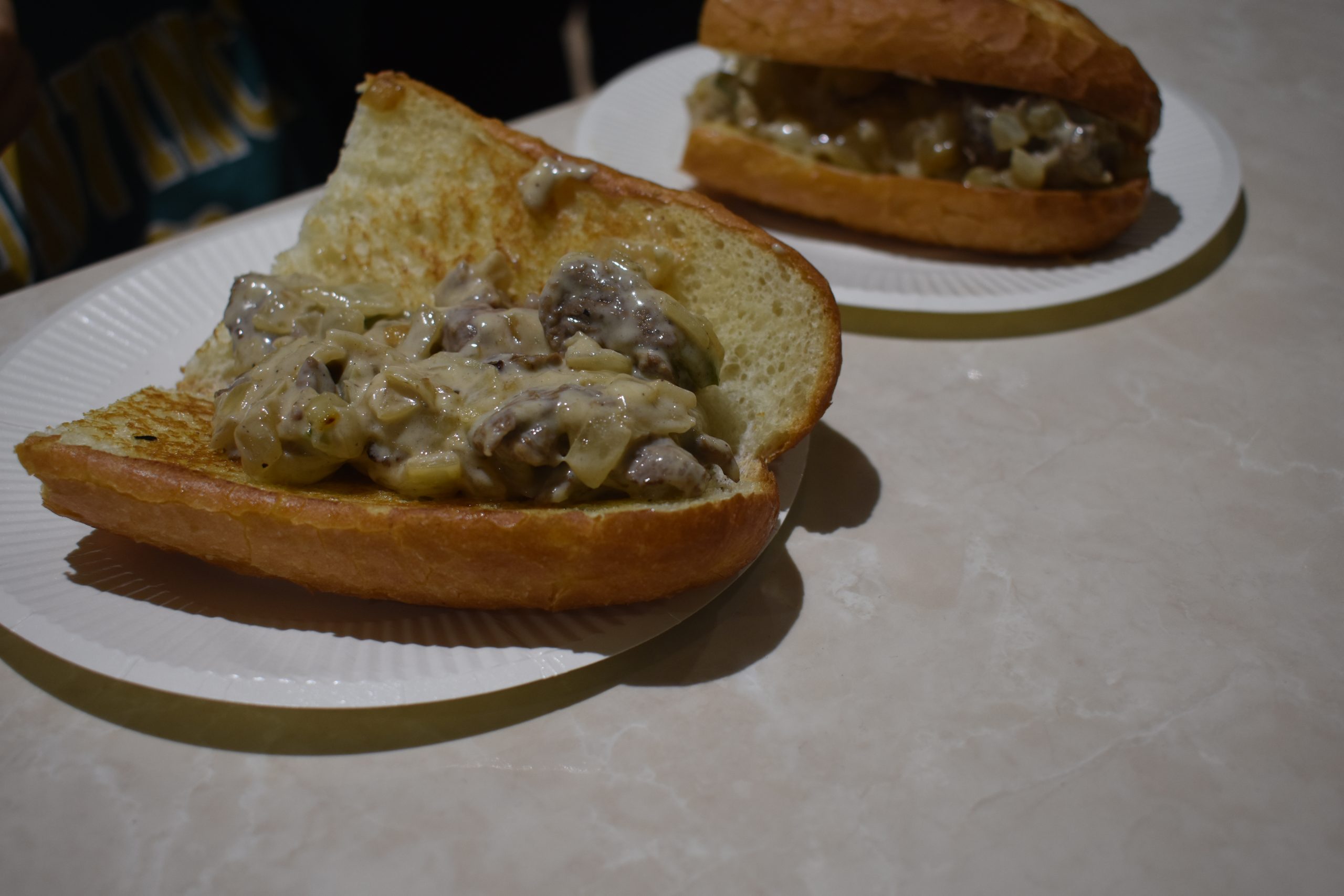 ボリューム満点の「Philly Cheese Steak」の調理を実演しました。