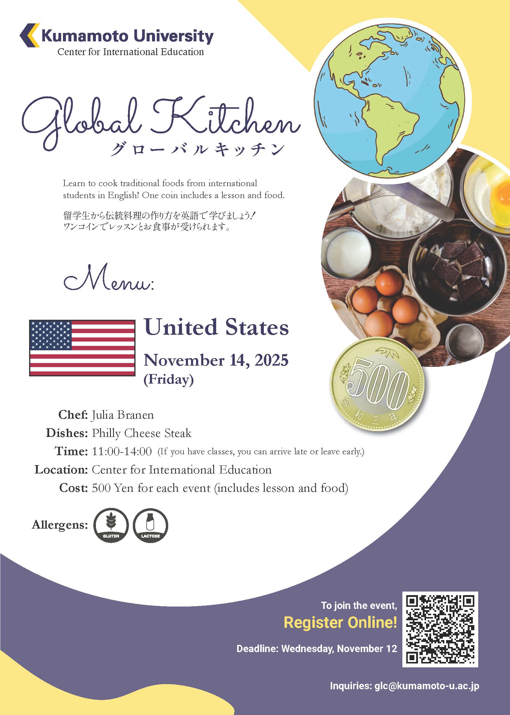 【案内】2025年度 第3回『Global Kitchen(アメリカ)』開催について