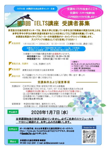 【受講者募集】2025年度第3回IELTS講座
